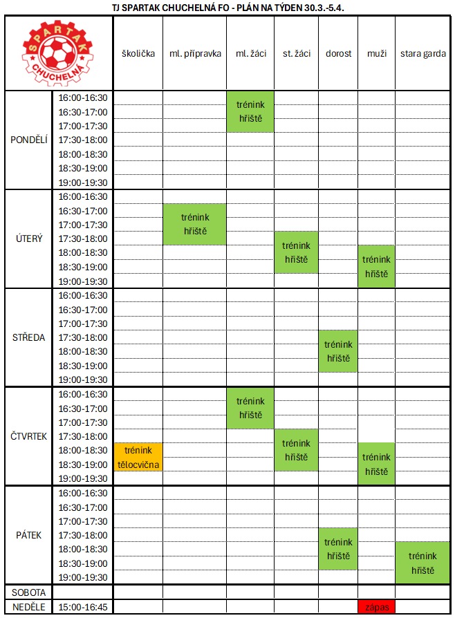 Fotbal – plán 30. 3. – 5. 4.